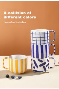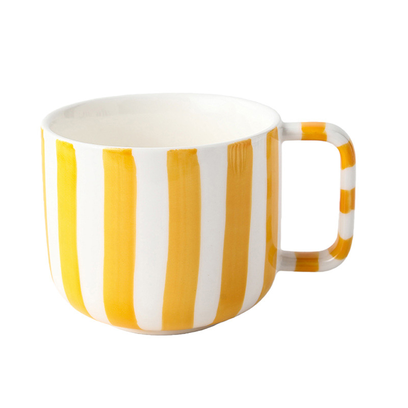 Creative Striped Ceramic Coffee Mug Breakfast Milk Cup Fresh and Simple Ceramic Tableware Plate