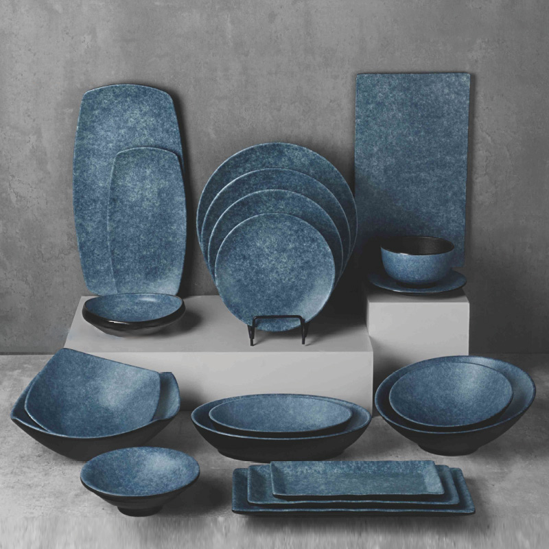 Combining earthy textures and the starry night sky, this Midnight Blue melamine tableware set evokes a profound tranquility, using the unbreakable stars to carry the ritual of each meal.